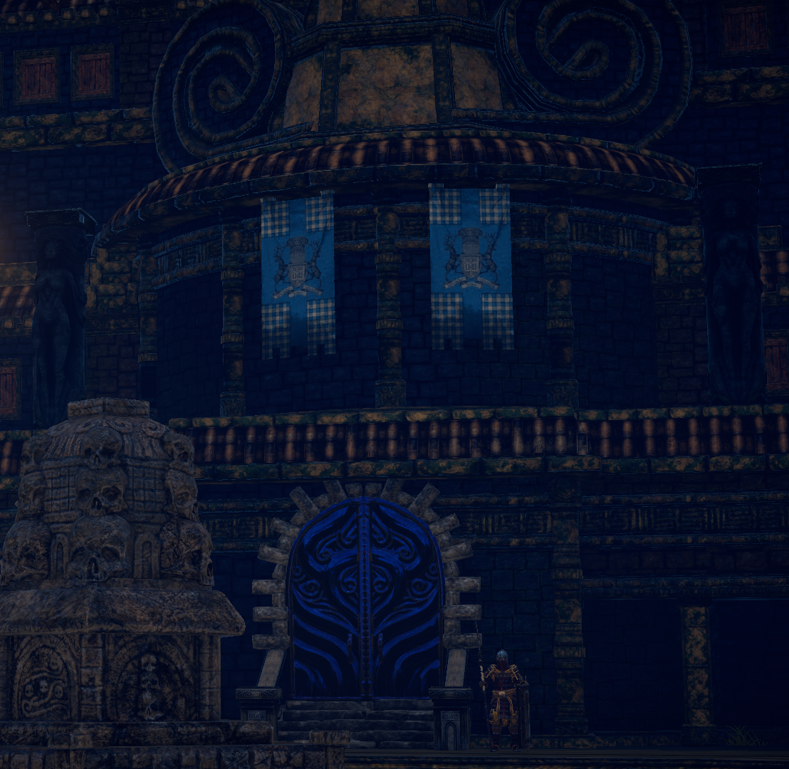 | “ | The ancient city of Berg is the seat of the Blue Chamber Collective's power, and the location of the eponymous Blue Chamber. When a tribal council is called upon to discuss major decisions, Chamberlords gather here from across Aurai. Despite the high stone walls, defensible doors and the ancient Forge Golems to defend it, Berg too was struck hard by the beasts of the Scourge. A large section of the city lies in ruins and is currently uninhabited. |
